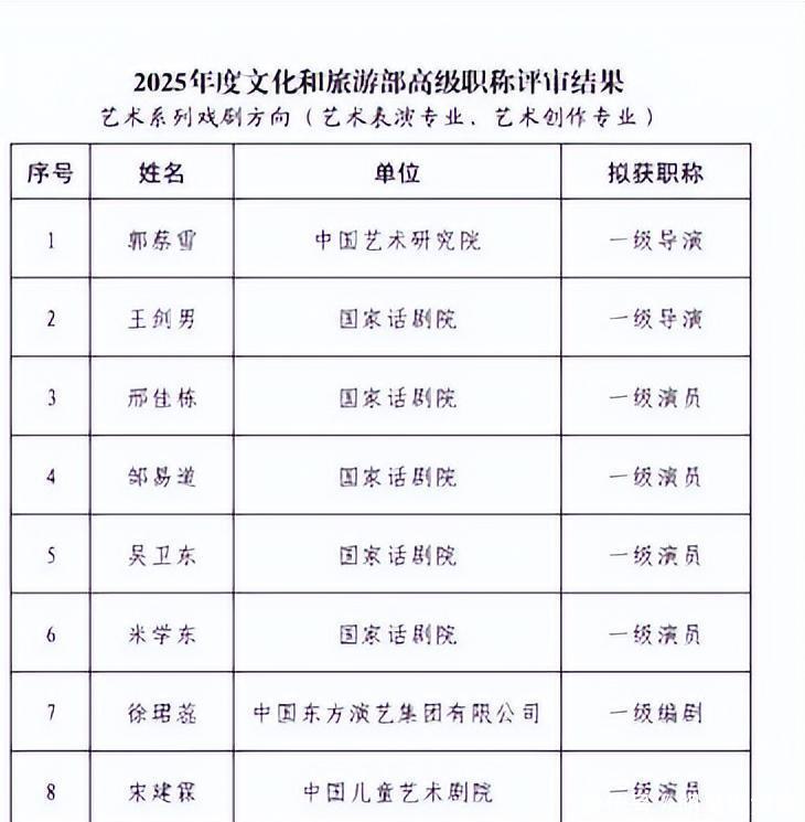 文:猫腿说事那天很多人是刷到一张截图才意识到,刘敏涛又一次被提到了台前,没有新剧预告,没有宣传通稿,就是一份名单,文化和旅游部公布的2025年度高级职称评审结果。
